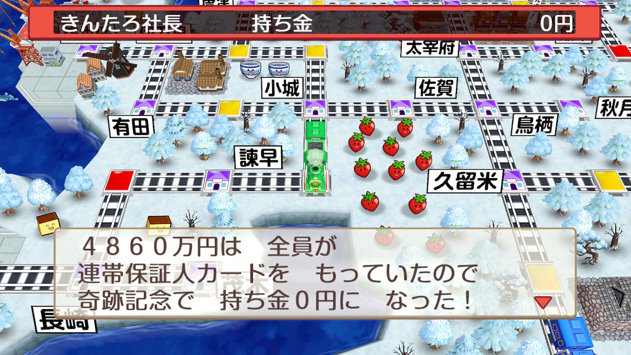 全員(借金した人以外)が連帯保証人カードを持っていると、奇跡記念という事で借金は0円になるちょっとレアな事が発生します。